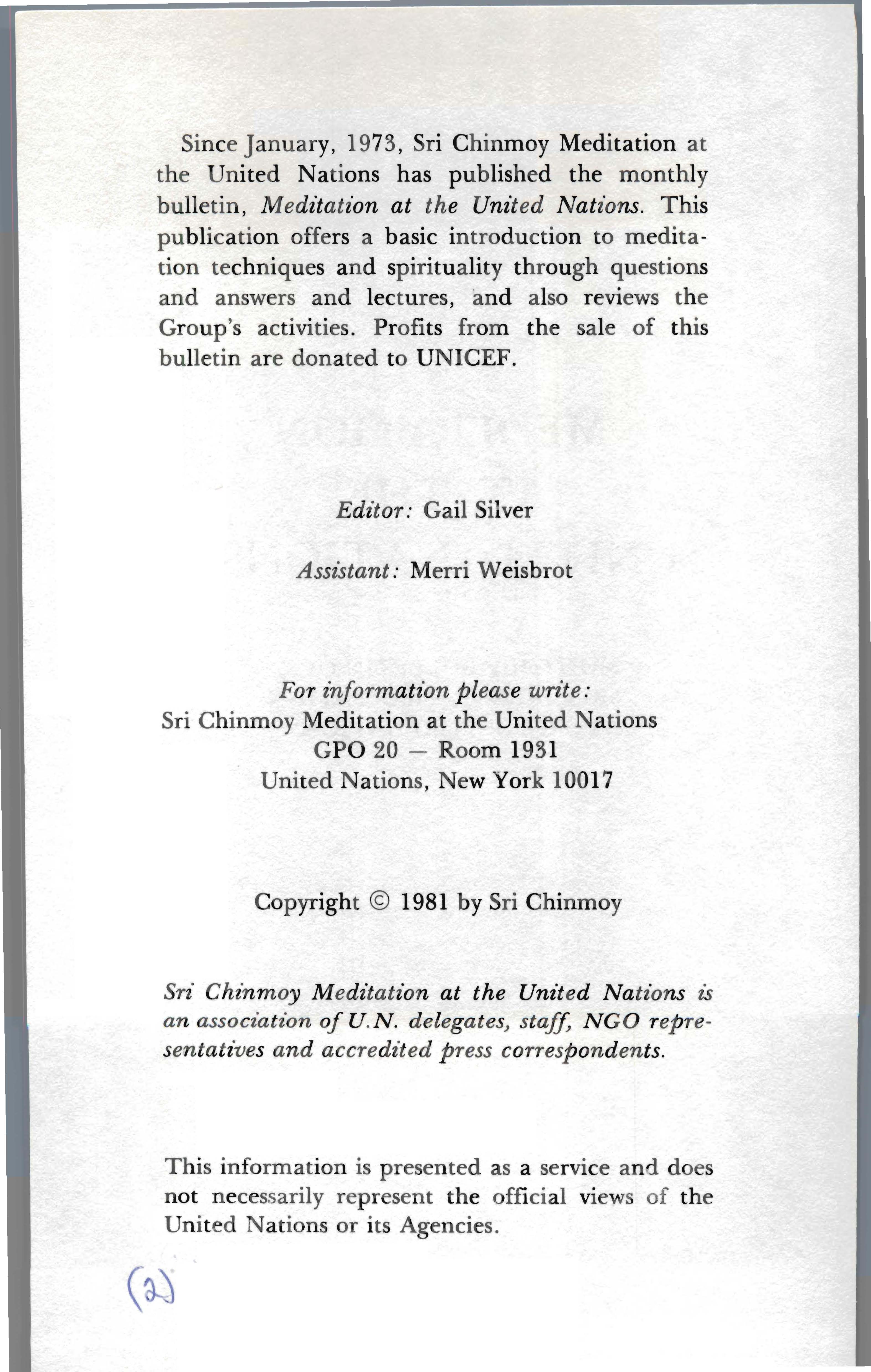 Meditation at UN – Vo 09, No 06; 27 Jun 1981, Bulletin