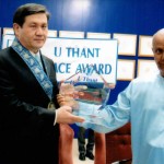 Filed under asia-oceana | photo - alone | U Thant Peace AwardPresident Nambaryn Enkhbayar of Mongolia receives the U Thant peace Award from Sri Chinmoy